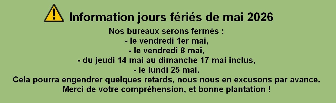 La qualité de notre service commence de la provenance de nos graines et plantes jusqu’à votre expérience client ! Notre large catalogue classe chacune de nos graines selon sa variété et ses caractéristiques, vous permettant de faciliter votre recherche et votre choix. Profitez d’un délai de livraison inférieur à une semaine pour l’ensemble de nos produits en stock. Tous nos services sont à votre disposition, si vous rencontrez des difficultés n’hésitez pas à prendre contact avec notre équipe.